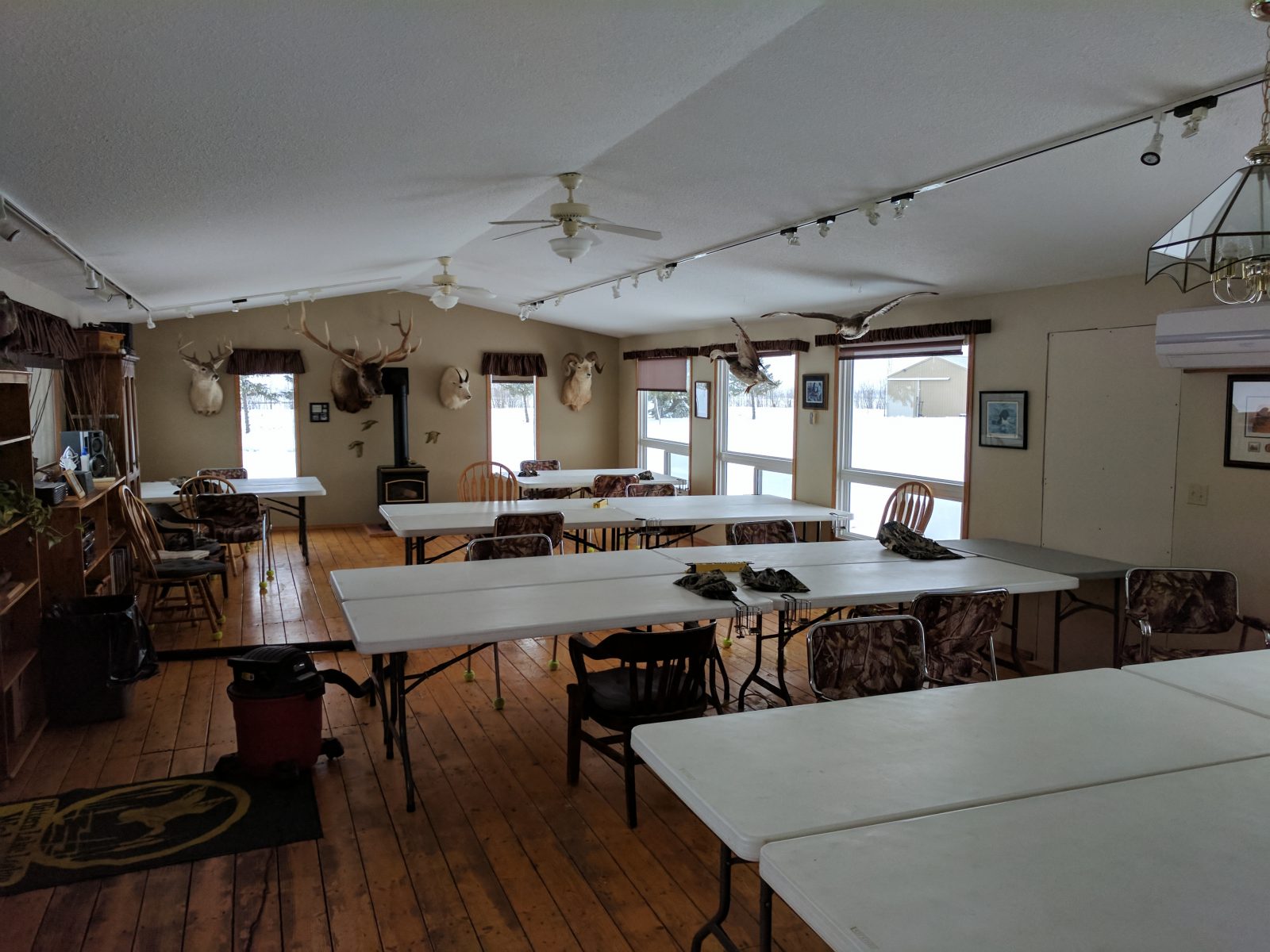 The Bittern Lake Lodge has 2 main buildings: a main lodge and a sleeping quarters. The main lodge features a gathering area, stove with a handy drying area near a wood stove to dry off wet clothes, and a large seating and table area for non-hunting activities as well as eating buffet style.