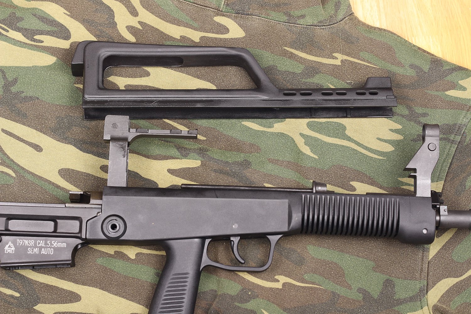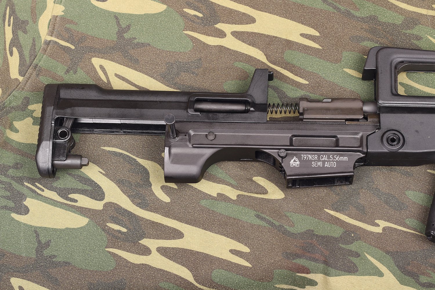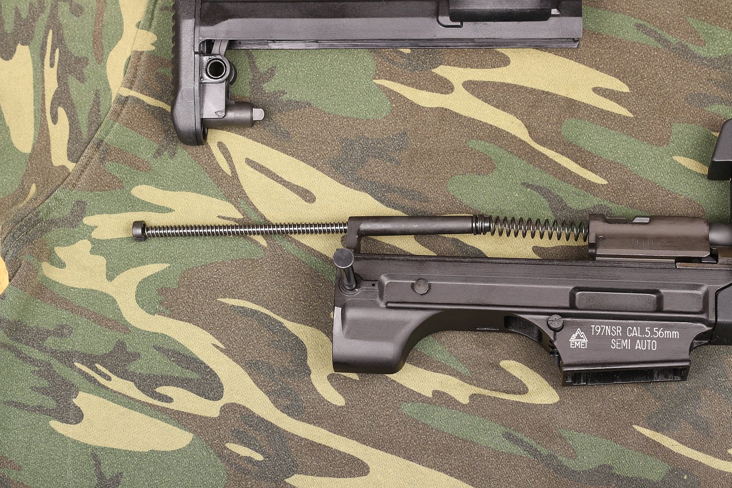 I had higher hopes for the T97 being as easy to disassemble as the AR15, but it’s not. The bolt comes out of the bolt carrier a bit easier, but overall accessibility is better in the AR15 line of rifles. The striker assembly of the T97 is a bit simpler/easier to break down than the buried trigger assembly on an AR15. That all said, my 16″ AR15 rifle is much longer than my non-restricted 18.5″ T97, even with the telescopic stock all the way in. The bullpup design requires a bit more complexity, but gives you a much more compact rifle to carry.