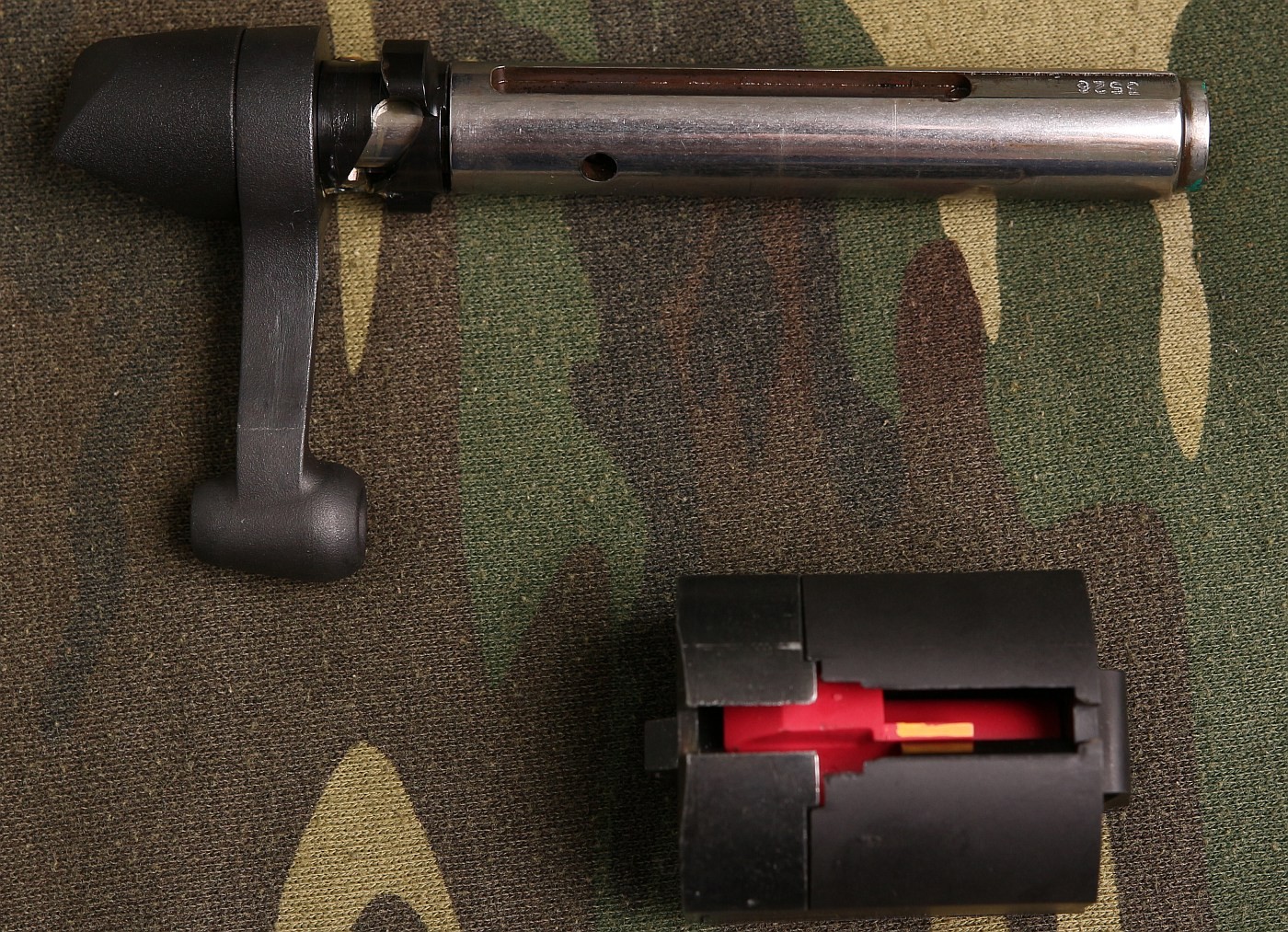 Most disconcerting: I, and many other new B.Mag owners on the internet have found that the factory stock bows like a rainbow internally and contacts the barrel near the midway mark. I’d guess that this is the main culprit in many of the accuracy complaints about the B.Mag, but there are a lot of theories out there right now.