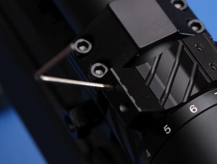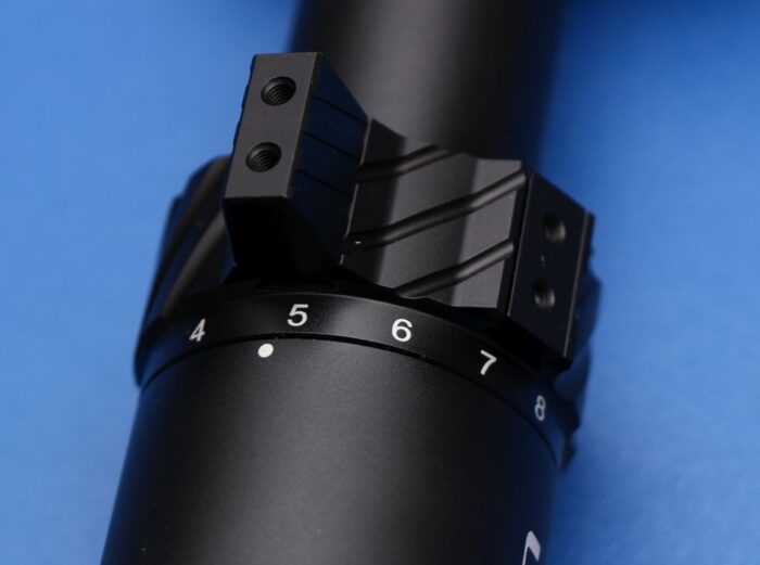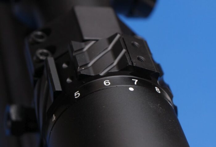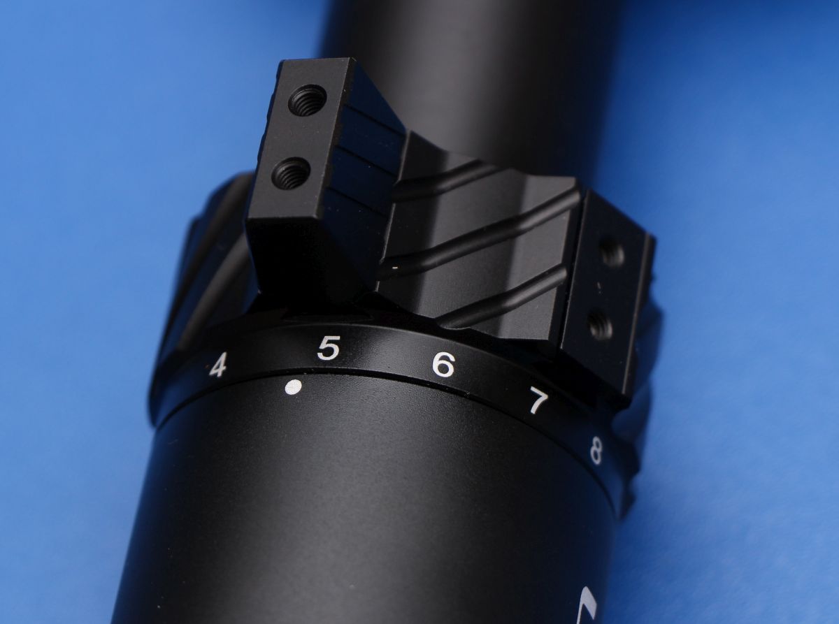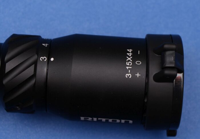 Riton includes an integrated, removable throw lever with these scopes. This is really handy in my books because it makes it easier to make big throws (like cranking it down after accidentally finding out you left it on max magnification)