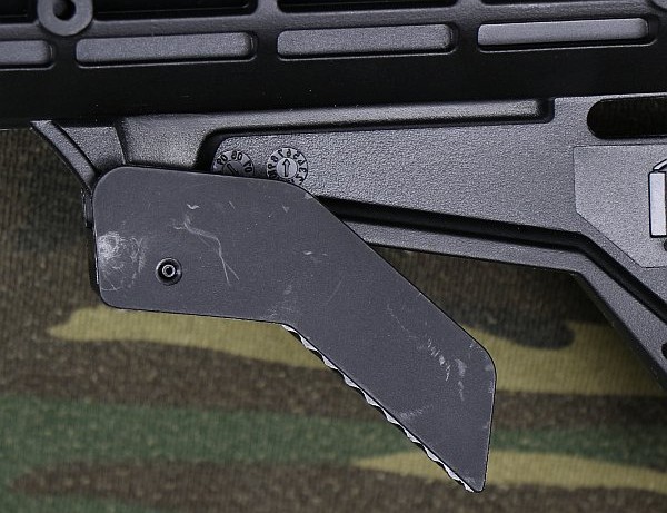 This was my favorite part of this stock. Recoil came straight back, and the 6 position stock actually gave me some nice choice; on my AR15, it’s simply “extend to maximum”. The buttpad wasn’t soft and supple like some of my pads, but it wasn’t all that bad. The rubber kept it in place on my shoulder and it was comfortable to shoot. The pistol grip was comfortable, though I can’t say I, or many people, really care how much rubber there is on the rear of the pistol grip. Unless you’re shooting from the hip or with one hand, it’s just not that important. I’d like for it to have snugged up to the trigger guard a 1/2″ more, but it was close enough. In terms of recoil reduction, I can’t say that this, or any stock, really takes much out. From what I’ve seen on recoil reducing shotgun stocks, you replace one kind of recoil with another. Personally, I don’t mind the hit of a shotgun as long as it’s straight back into my shoulder, and this stock does it just as good as most others.