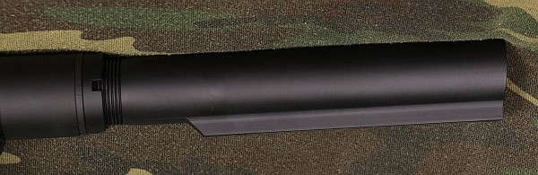 Since I got the, ahem, professional package for $50 more, I got a forend, an adjustable cheek riser and the mysterious aluminum upgrade package. I assume they have a regular, non-aluminum (plastic) standard for their dovetail connection, and it sucks so they came out with an aluminum upgrade. That’s just a guess though. The M4 stock is mounted on a 6 position commercial buffer. So if you’re not crazy about the stock, and I’m not, you can always chuck another commercial tube spec M4 stock on. Specifically, the stock release lever and pivot on the ATI stock were kinda shitty. The rest of the buttstock was alright. The scorpion buttpad was no R3 supercell and isn’t going to tame much kick, but it’s a heck of a lot better than the hard plastic pad on my old 870 stock. Keeping in mind that a good buttpad is $30-$40, and this whole stock system is ~$150, I’ll let it slide.