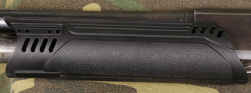 If you’re really gung-ho on your tactical shotgun forend, there are tri-rail forends that have full rails on the bottom and sides for all sorts of accessories. Personally, I just thought it’d be weird to combine a nice wood forend on the front and a plastic M4 style buttstock, so I opted for the kit that came with a forend. This ATI forend comes with options for 3 small rails towards the front. These would be perfect for a flashlight or keychain holder or whatever other crap you want to throw on your shotgun. I installed the left rail section in case I want to throw a flashlight on there, but left the other off. Incidentally, my forend didn’t come with the bottom section molded/machined properly. Instead of having a relief and holes to screw into, it’s just a blank. It’s a basic QC issue, and even though I’m not using it, it was still a bit of a piss off.
