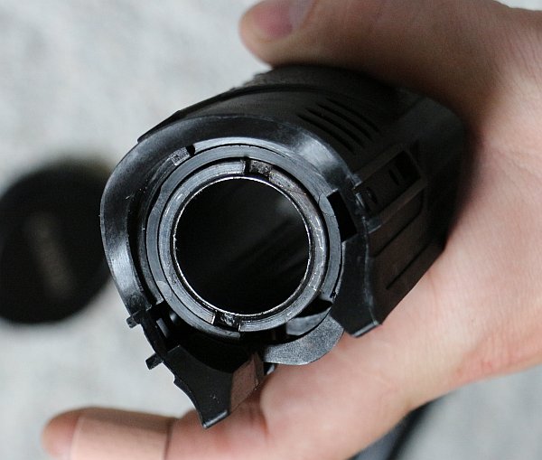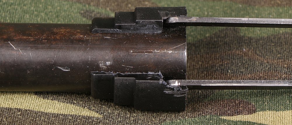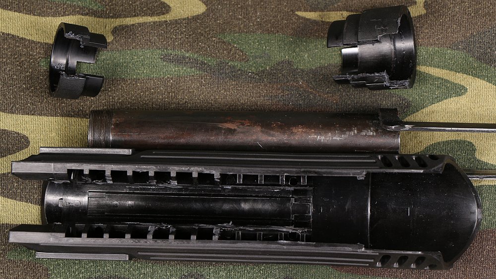 Installation of the forend wasn’t super straight forward. First off, the part comes with pieces that it says in the manual you have to remove. That’s right, they don’t remove them at the factory, you need to. After dremelling out the “bridges” as they’re called in the manual, I did a test fit of the front and rear adapters on my forend. With the action bar tube-thing (official part name 🙂 it was about 1″ short. I had to dremel the rear adapter so that the action bars would snug in and give me enough room to get the castle nut on. I’m not sure how many 870s are like that, but it added to the cheesy factor when putting the stock on. Happily, after getting it all snugged up, the forend was very solid.