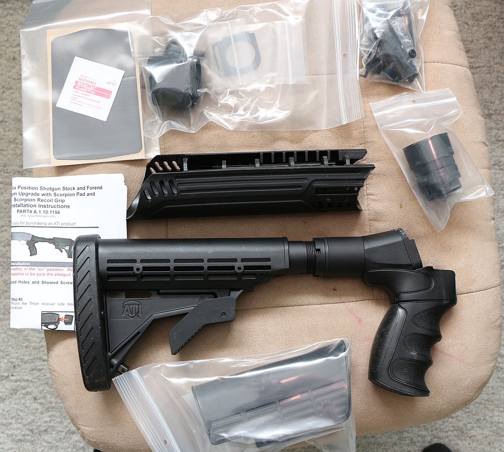 For a guy just finished kitting out an AR15, tactical shotguns seem great. Tactical shotgun parts are cheap and plentiful, and the guns themselves are everywhere and ultra reliable. While there is no dominant platform like the AR15, tactical shotguns are very much centered around the Remington 870 and Mossberg 500. Some semi auto shotguns have taken favor, but their utility is pretty poor compared to an all-digesting pump. It’s just difficult to make a semi that fully functions with light clay busting loads and doesn’t take damage when you shoot slugs or 3 1/2 turkey loads. Anyhow, I was over at Cabela’s and I had to buy the ATI Talon Tactical Shotgun Ultimate Package. Mostly because my existing 870 Wingmaster had a nasty cracked buttpad and scored up, chipped stock.