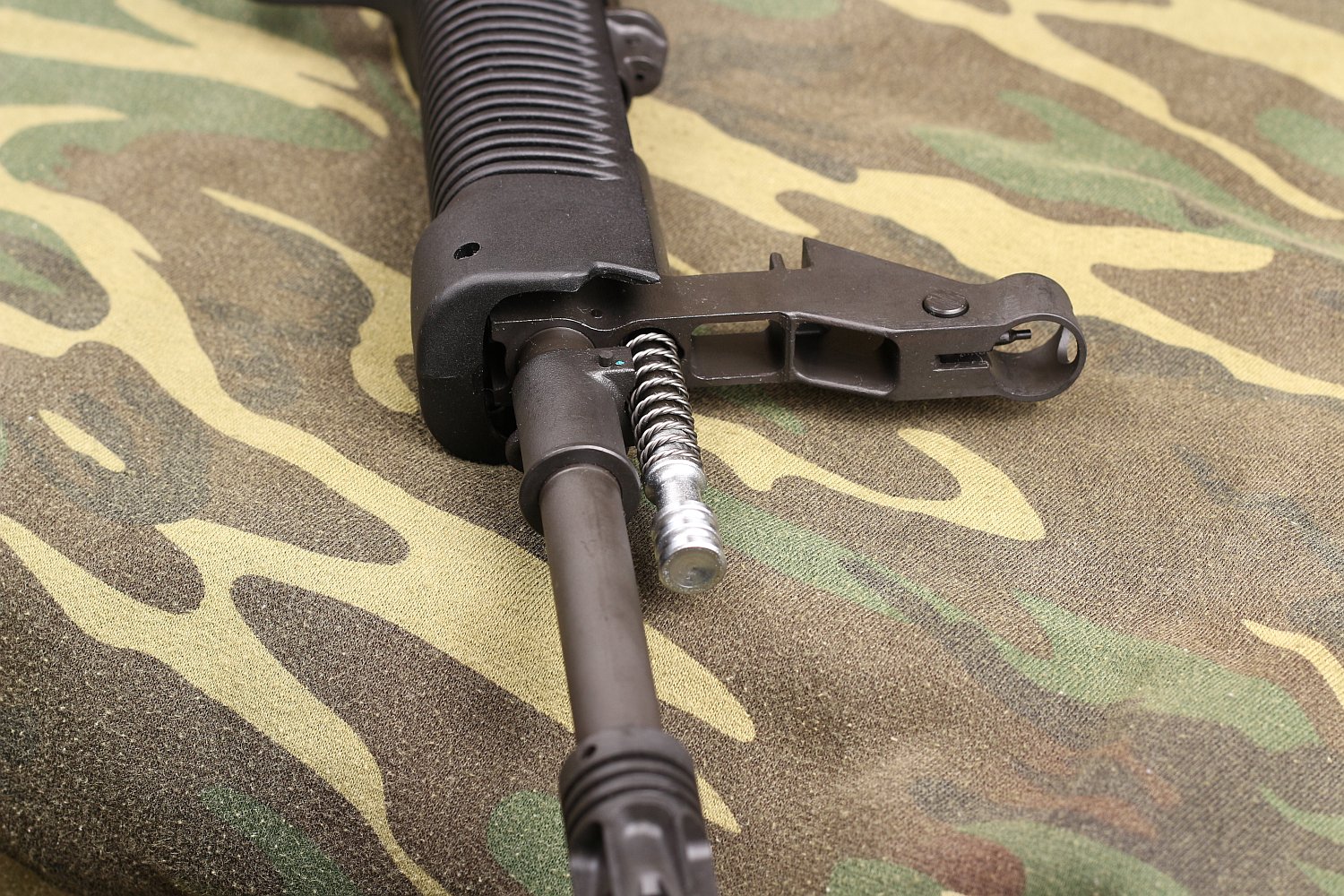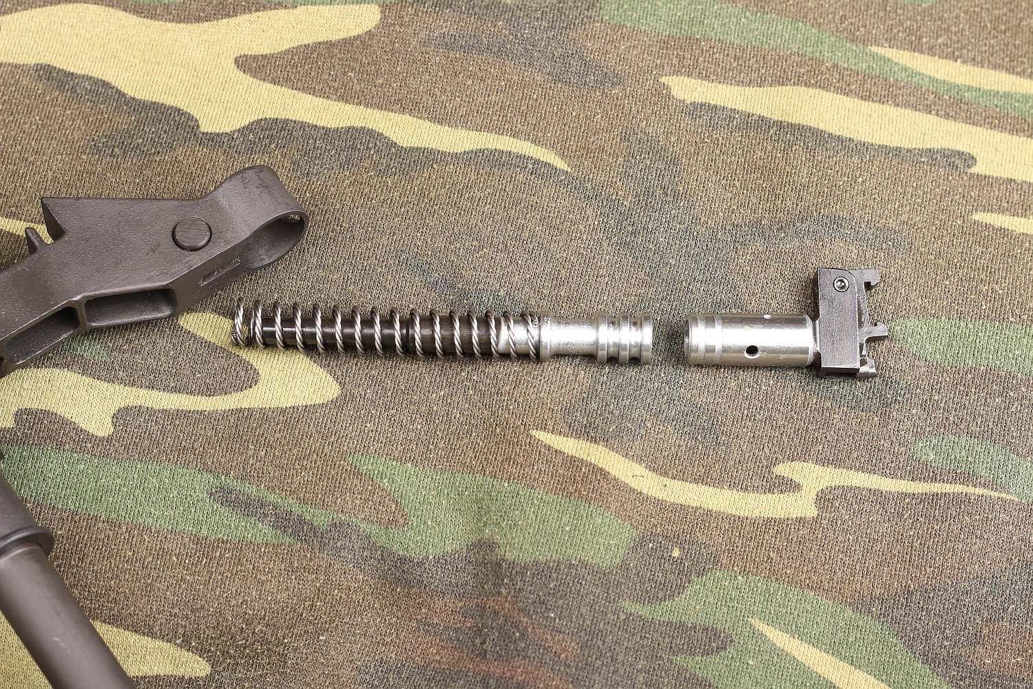 - 移除贴腮板,滑动式击锤可以拆出来,枪机框,枪机,装填手柄。