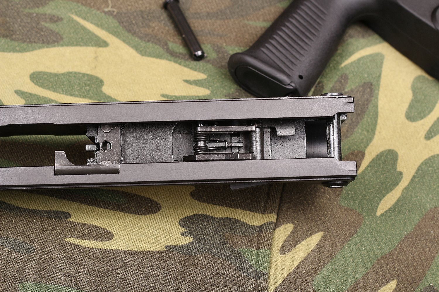 - 移除聚合物的握把和扳机(扳机应该不是聚合物的)