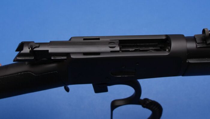 The Good: The action is surprisingly slick for a rifle at this price point. It’s reliable with standard .357 Magnum and .38 Special round-nose or hollow-point ammo. The Skinner-style peep sight is an upgade over traditional buckhorn sights—it’s fast, adjustable for windage and elevation, and just works.