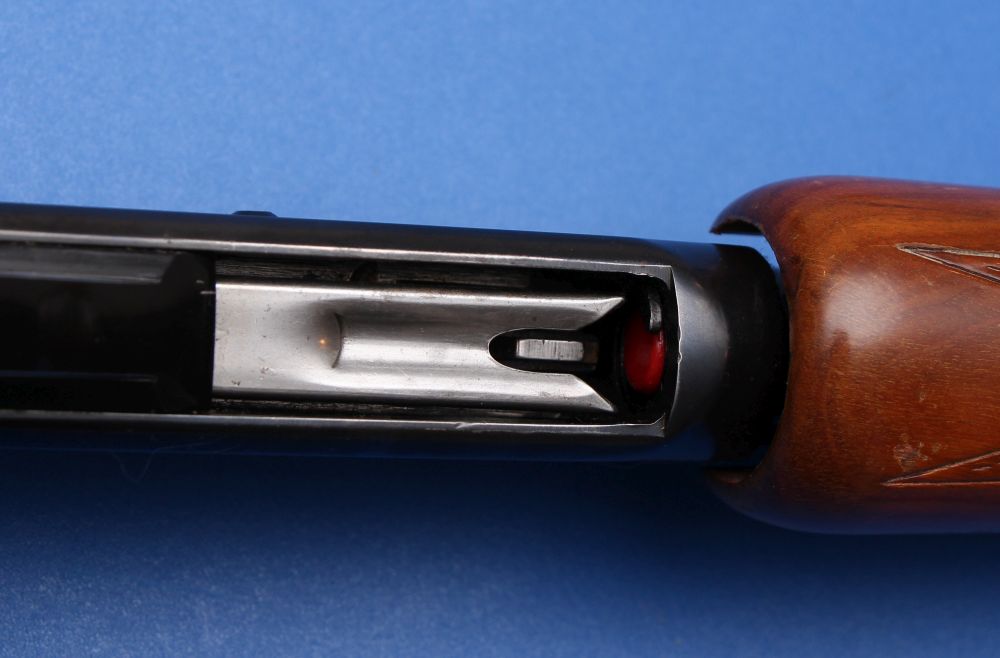 Loading and Cycling Loading the 170a is exactly like loading a pump-action shotgun. It uses a lifter and a tubular magazine. There is a small “shelf” or latch inside the loading port; you want to make sure the rim of the cartridge catches that shelf so the rounds don’t spring back out at you.