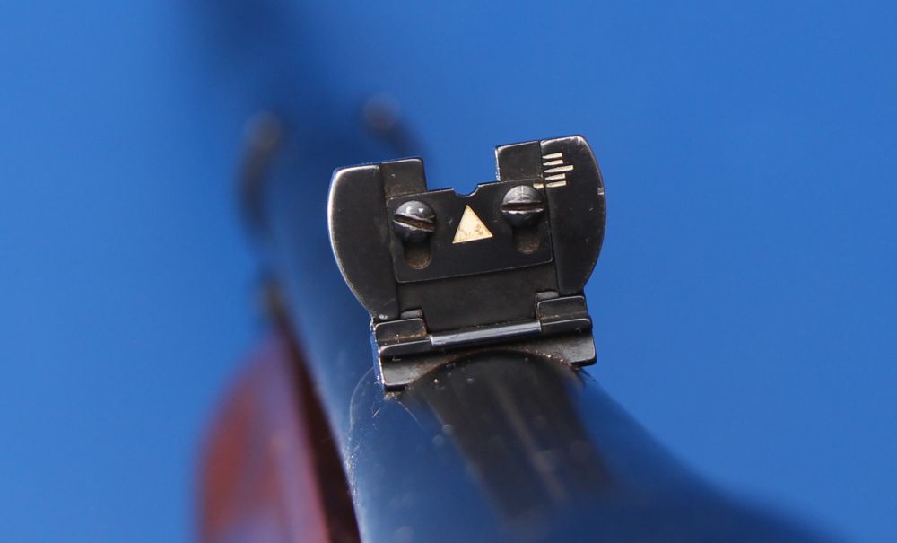 - Sights: Brass bead front sight; folding rear sight; receiver is drilled and tapped for scope mounts
