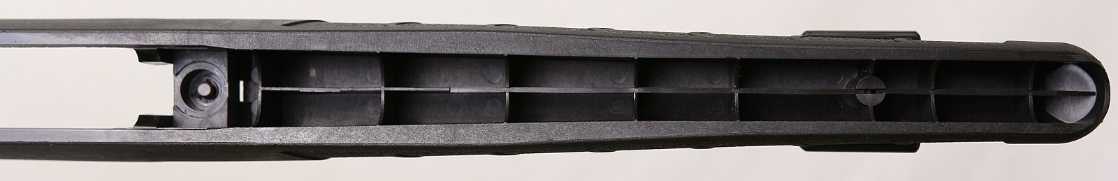 Most disconcerting: I, and many other new B.Mag owners on the internet have found that the factory stock bows like a rainbow internally and contacts the barrel near the midway mark. I’d guess that this is the main culprit in many of the accuracy complaints about the B.Mag, but there are a lot of theories out there right now.